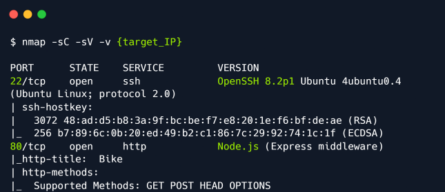 22/tcp open ssh OpenSSH 8.2p1 Ubuntu 4ubuntu0.4 (Ubuntu Linux; protocol 2.0)