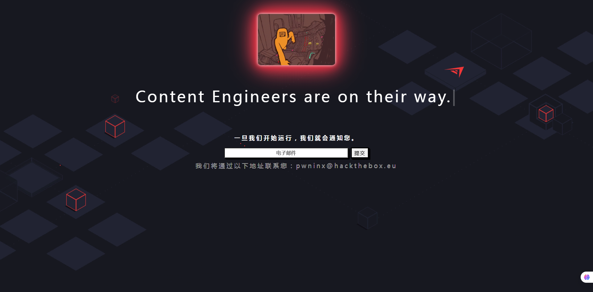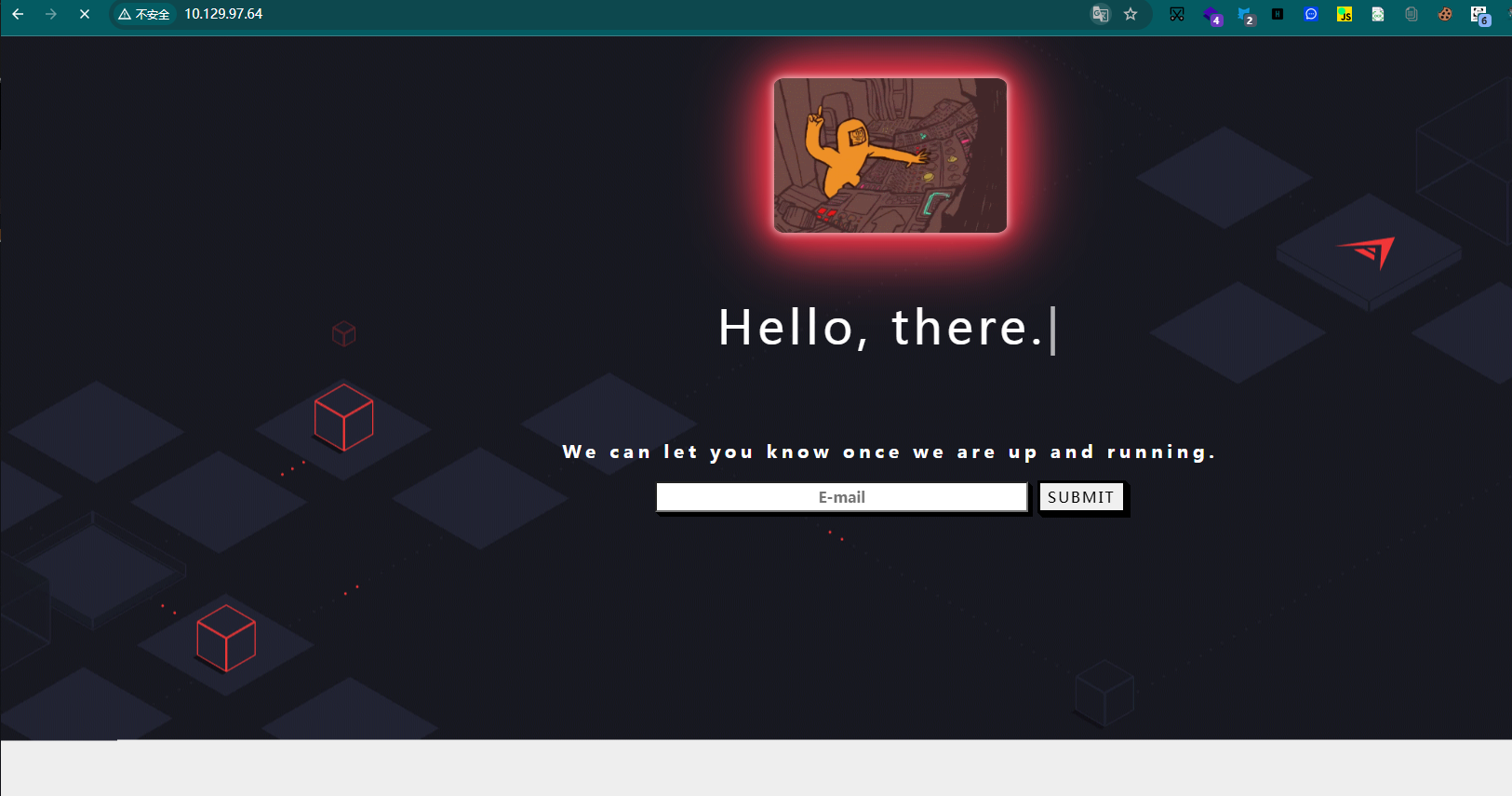 访问80端口后,我们看到一个正在建设中的网页,以及使用电子邮件地址订阅页面更新的选项。网页中的电子邮件订阅功能通常是允许网站访问者通过电子邮件接收关于网站状态或网站所有者(公司或个人)更新信息的选项。