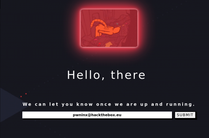 让我们提供一个测试邮箱来验证应用程序是否正常工作。当给定一个应用程序进行测试时,要像正常使用它一样使用它。有时,开发人员会使用糟糕的代码作为快速解决方案,这会导致漏洞。让我们输入邮箱pwninx@hackthebox.eu并点击提交。