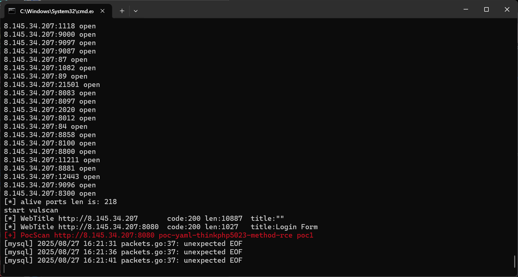 fscan.exe -h 8.145.34.207