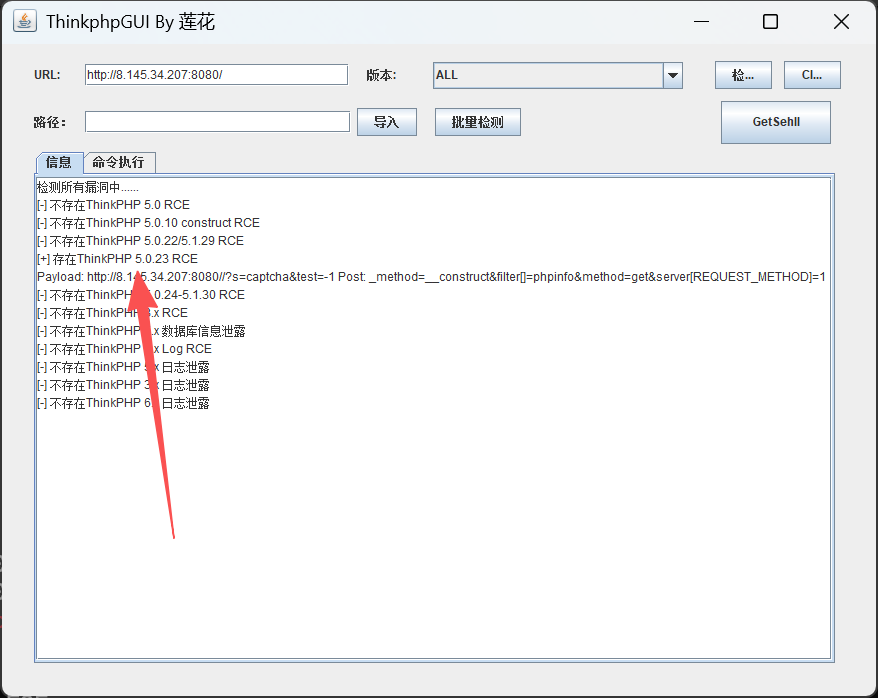 [+] PocScan http://172.28.23.17:8080 poc-yaml-thinkphp5023-method-rce poc1