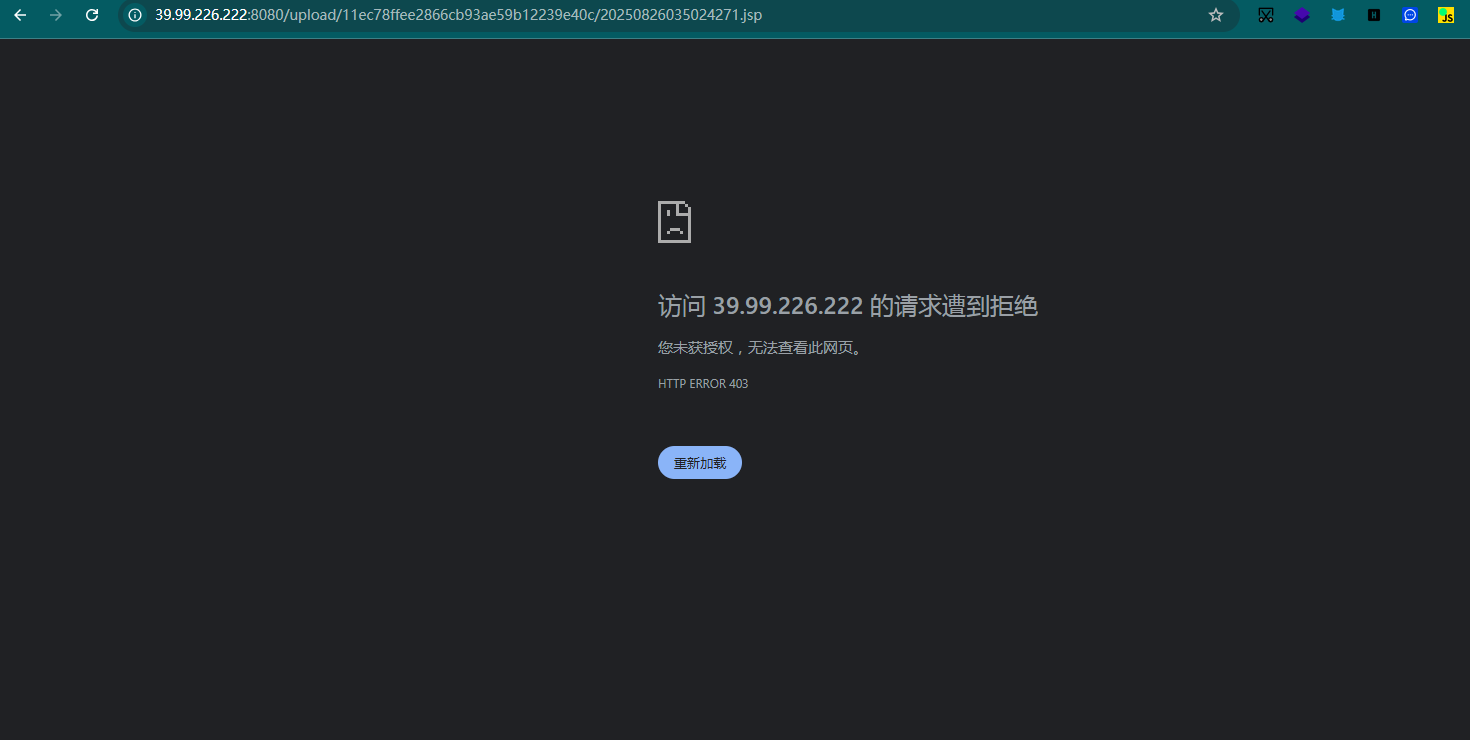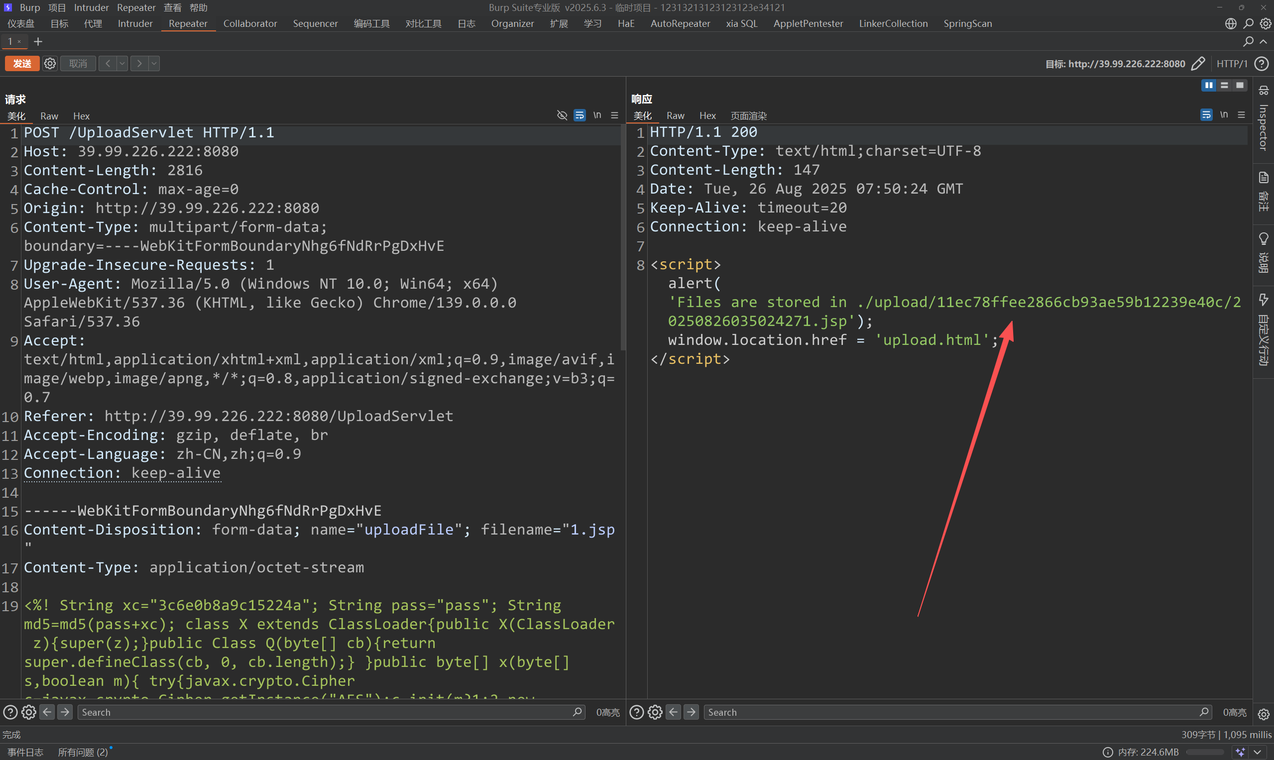 http://39.98.123.158:8080/UploadServlet因为是tomcat的站,我们传一个jsp的马