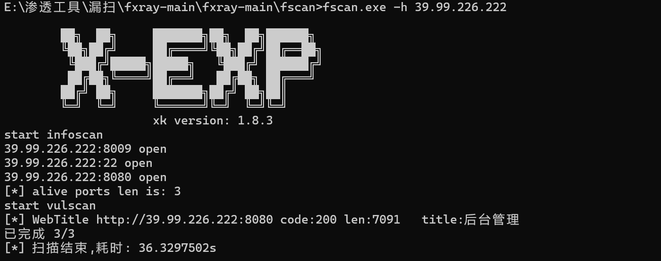 [*] WebTitle http://172.22.11.76:8080 code:200 len:7091 title:后台管理使用软件处理一下结果