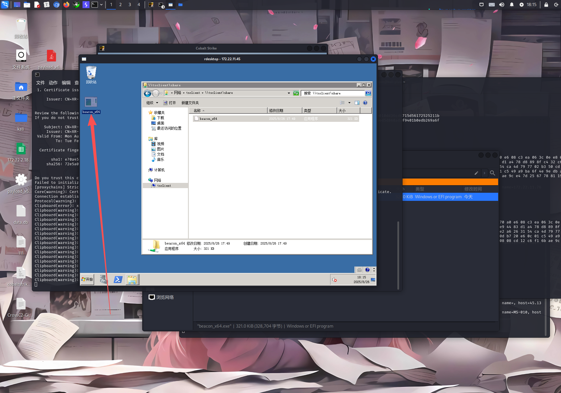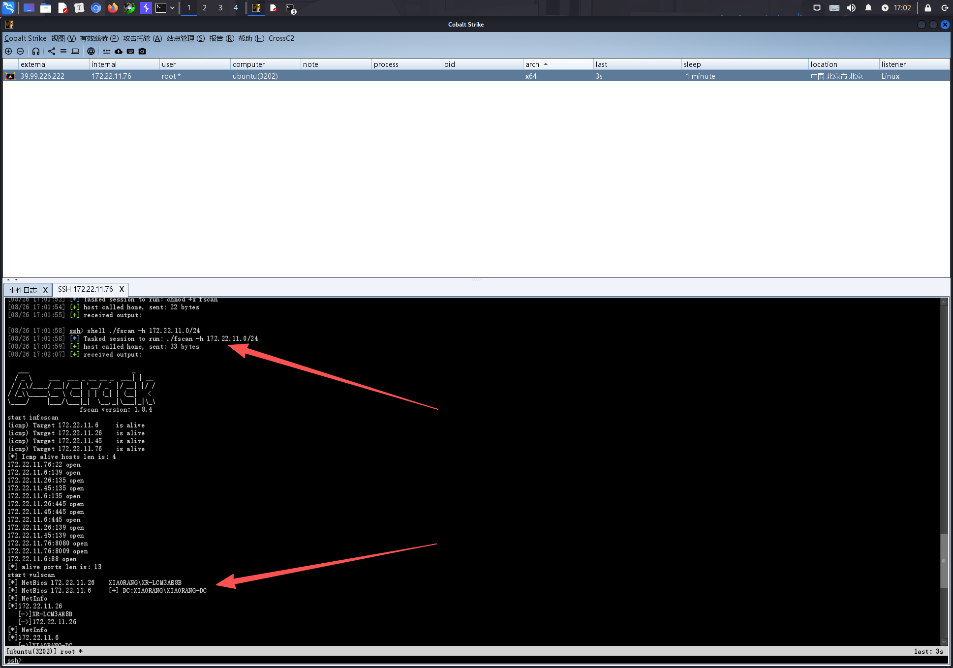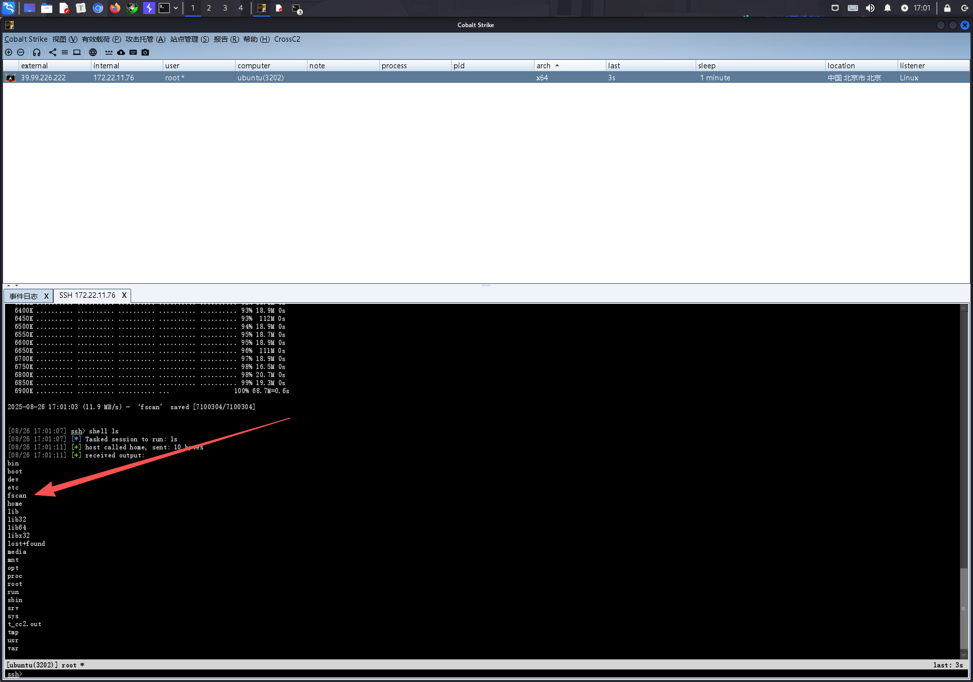 这就很爽了,linux也成功上线cs了,然后我们选择把fscan从服务器上拉下来