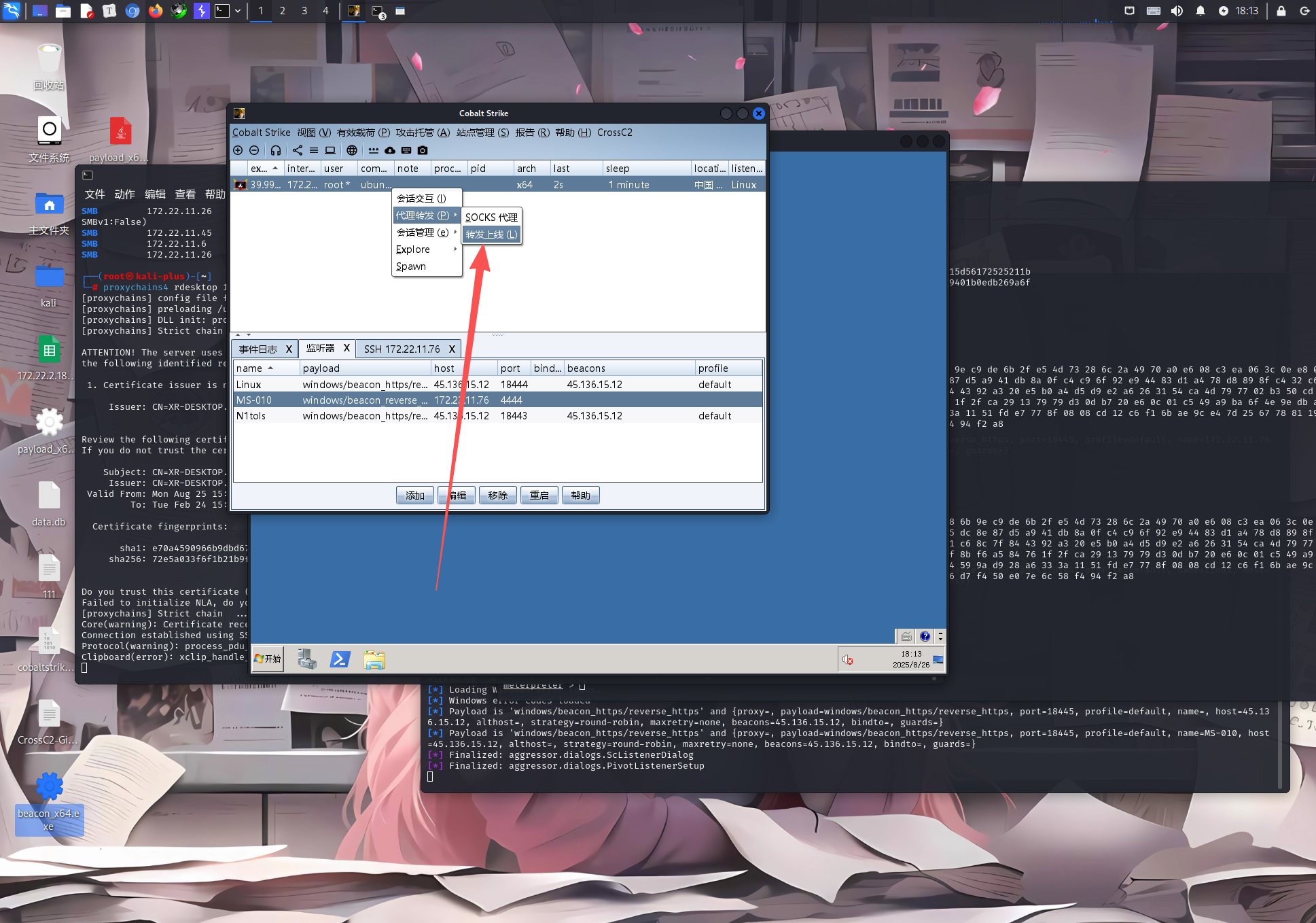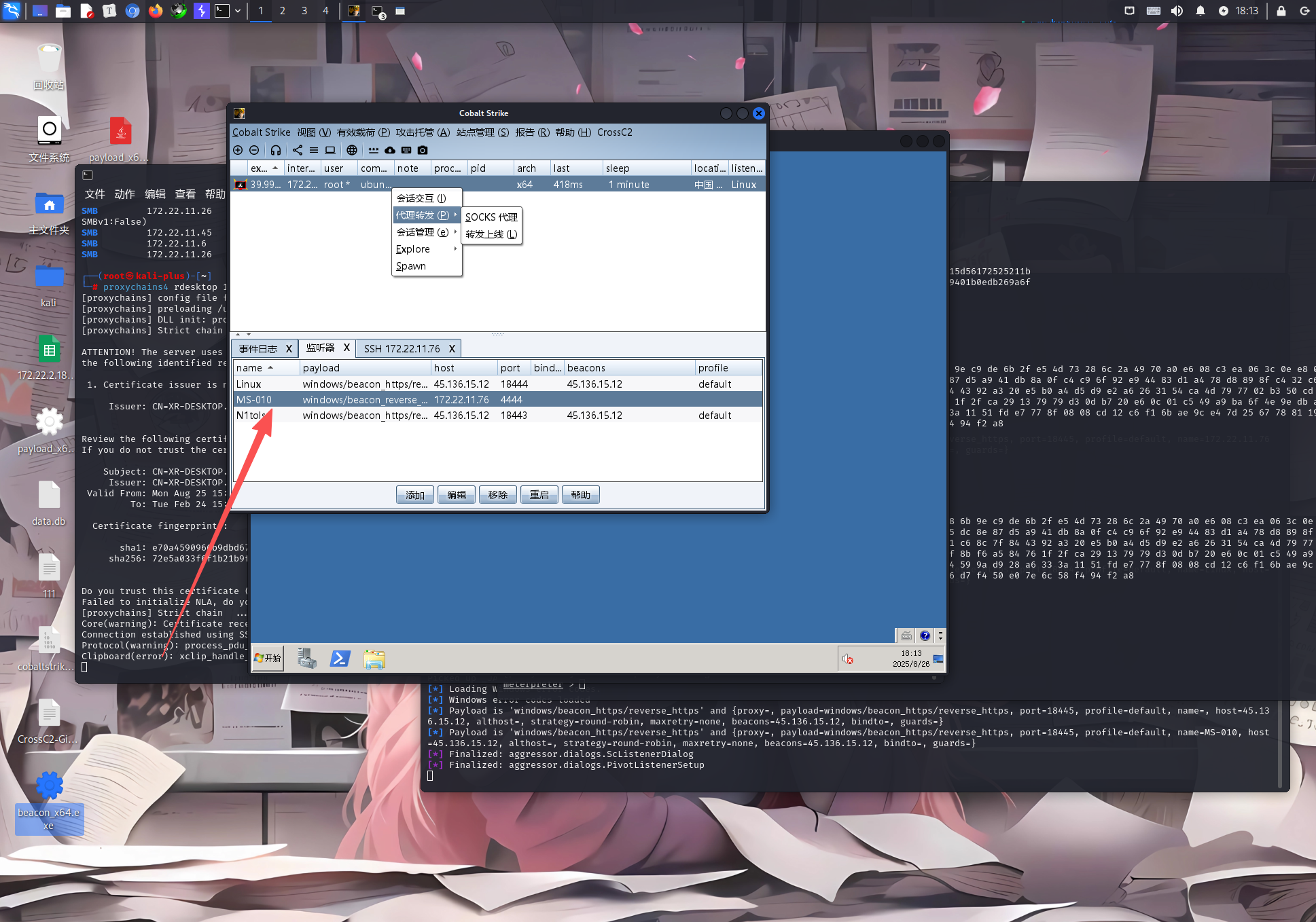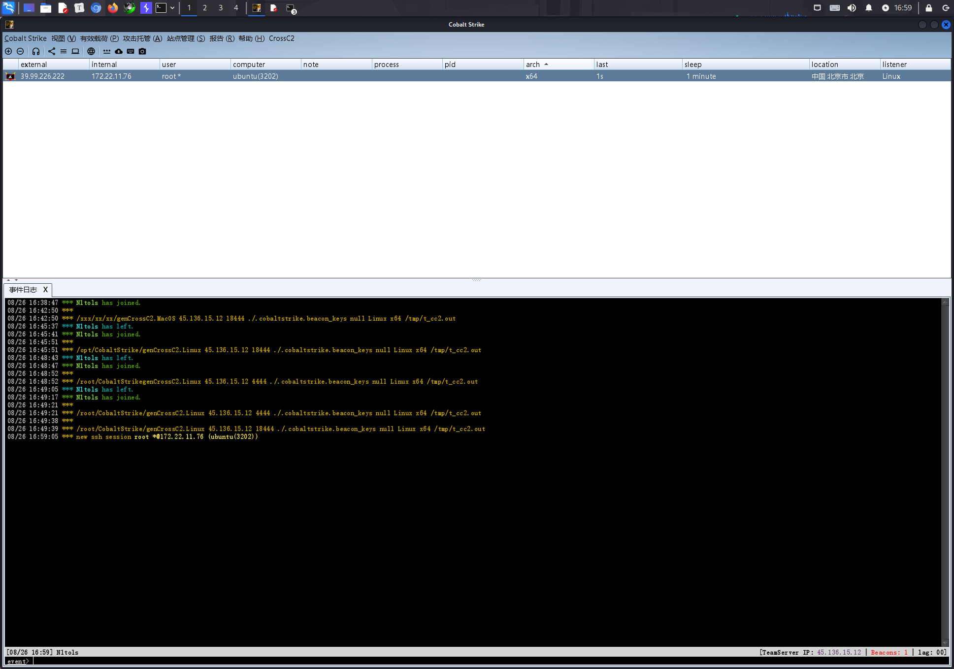 然后我们在服务器下放上genCrossC2.Linux并赋予执行权限,在kali的脚本管理器里面加入
