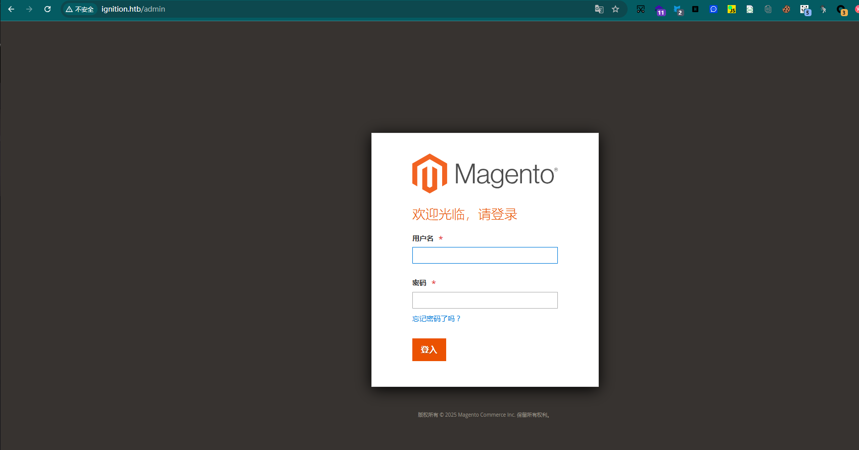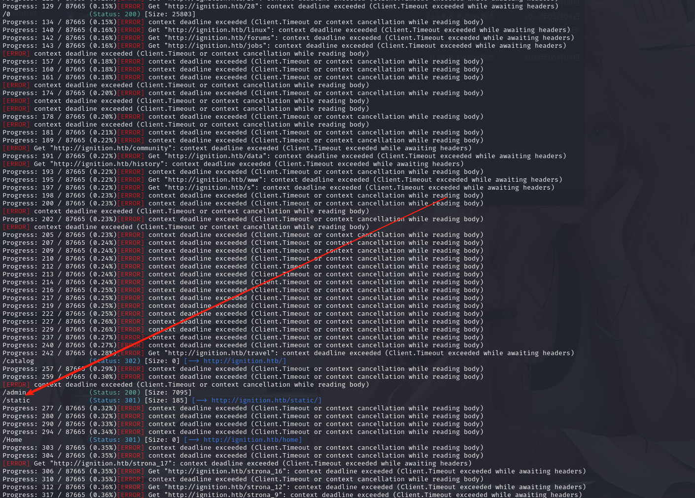 └─# gobuster dir --url http://ignition.htb/ --wordlist /usr/share/wordlists/dirbuster/directory-list-2.3-small.txt 等待跑完