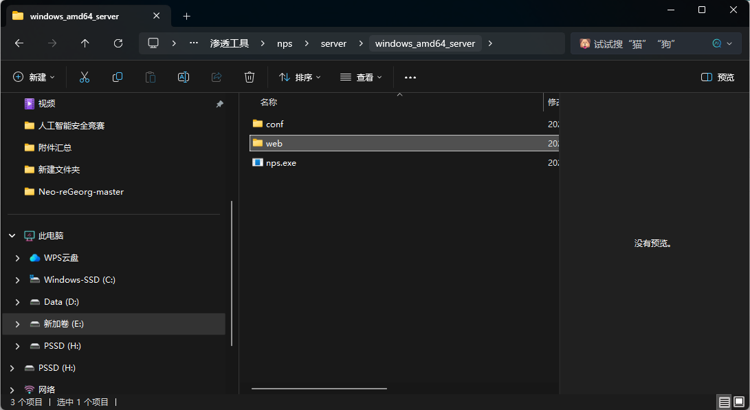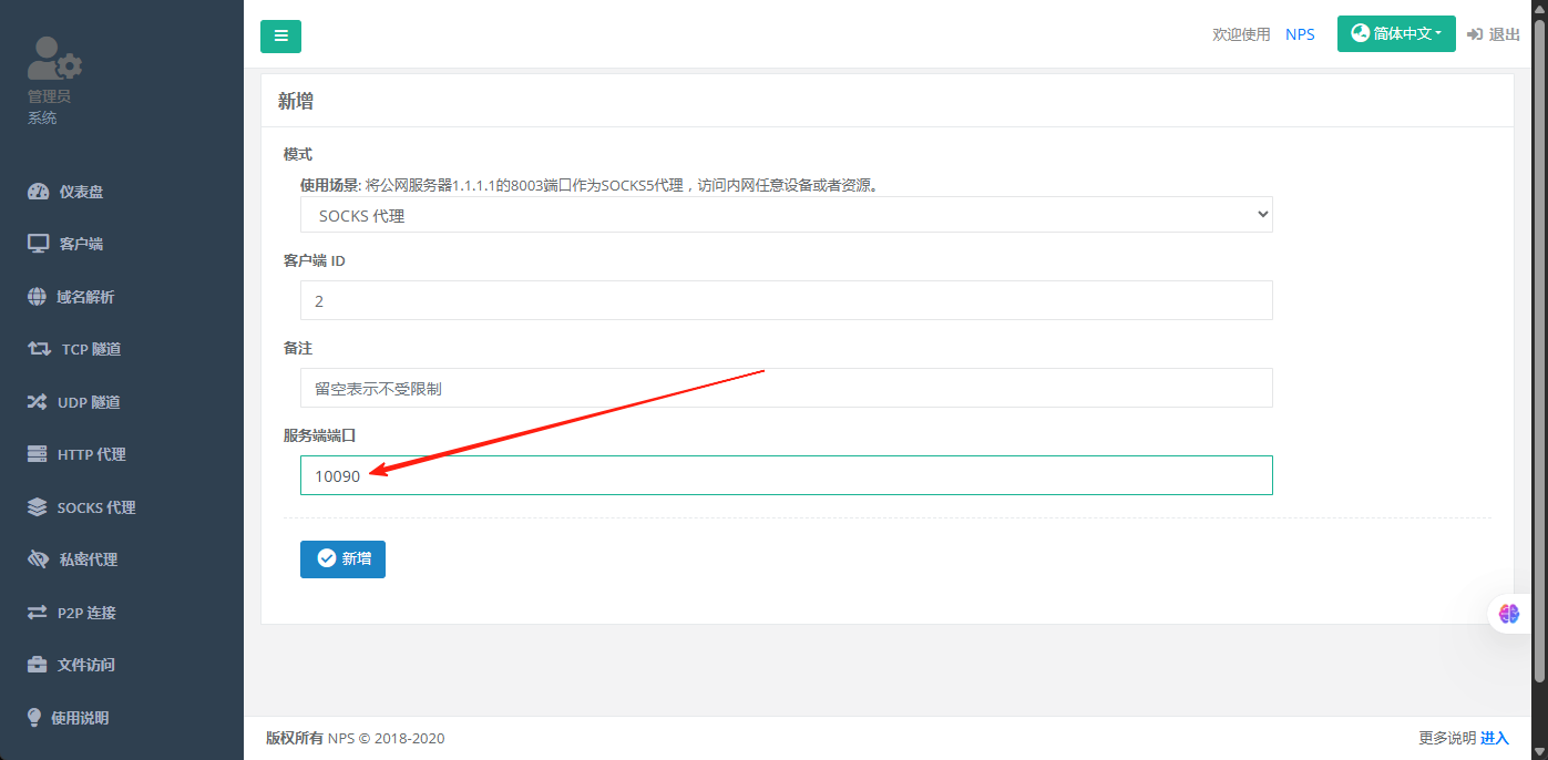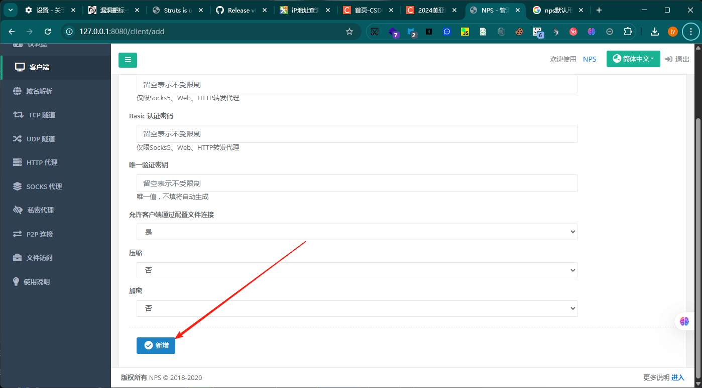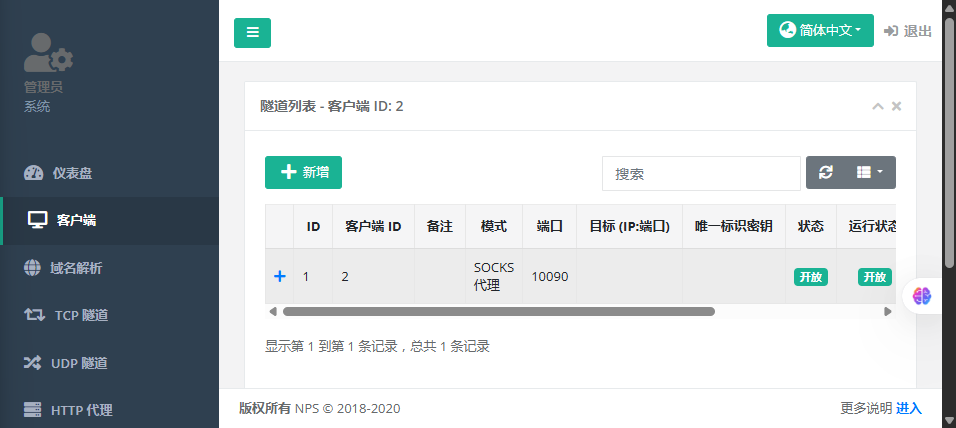 win执行:npc.exe -server=vps:18024 -vkey=piv873ad0iwe3nuo -type=tcp