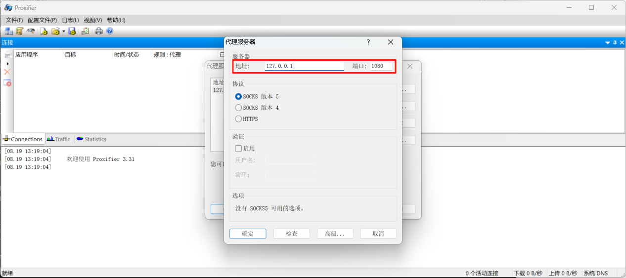 首先需要先设置代理因为Neo-reGeorg走的是127.0.0.1的1080的socks5