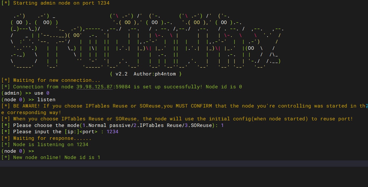 ./linux_x64_admin -l 1234 -s 123VPS1 出网靶机运行: