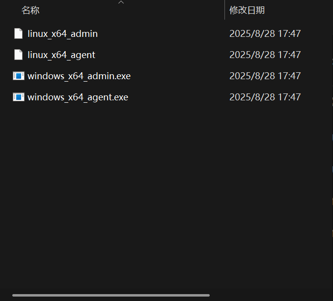 ./linux_x64_agent -c 控制端ip:1234 -s 123 --reconnect 8建立连接后在控制端运行: