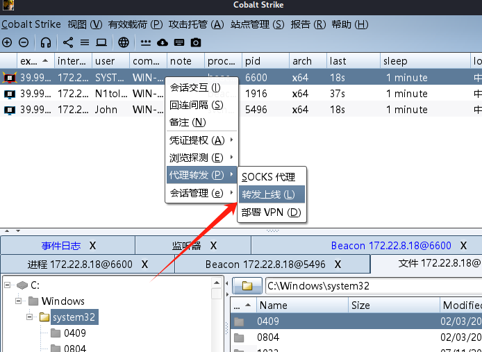 然后我们就要想办法拿到48这个机子的管理员权限,因为机子不出网,所以我们要做个代理转发