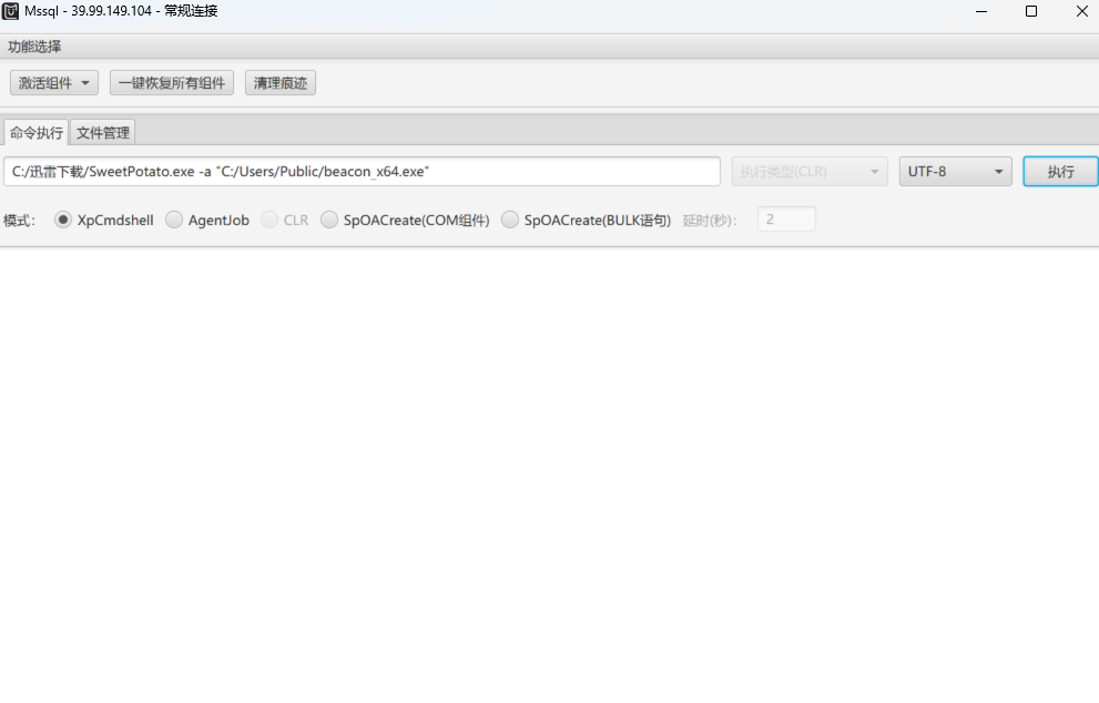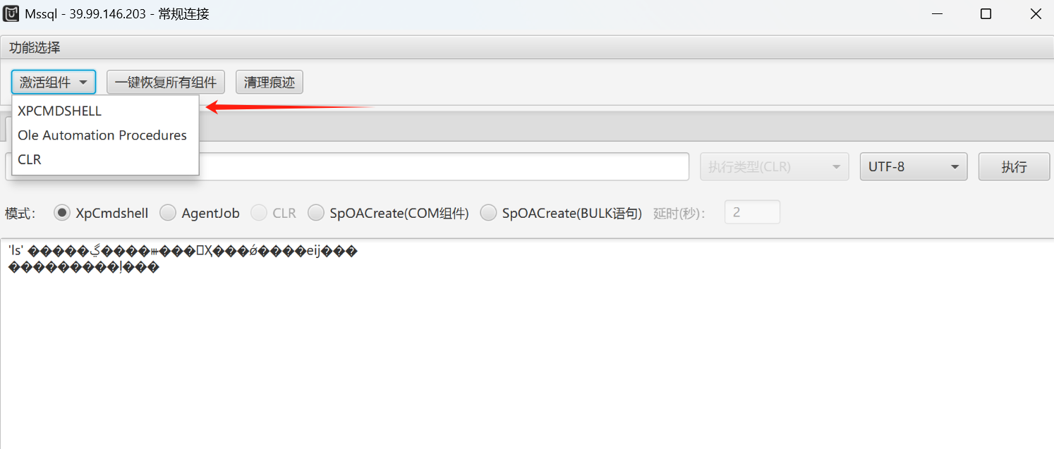 激活一下XPCMDSHELL组件,不激活的话在XPCmdshell模式下是无法执行命令的,除了点击激活组件之外激活组件的原理其实就是下面这一条命令: