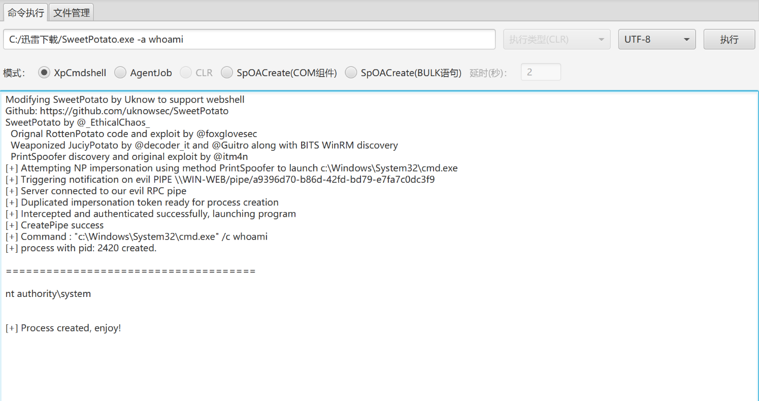 C:/迅雷下载/SweetPotato.exe -a whoami