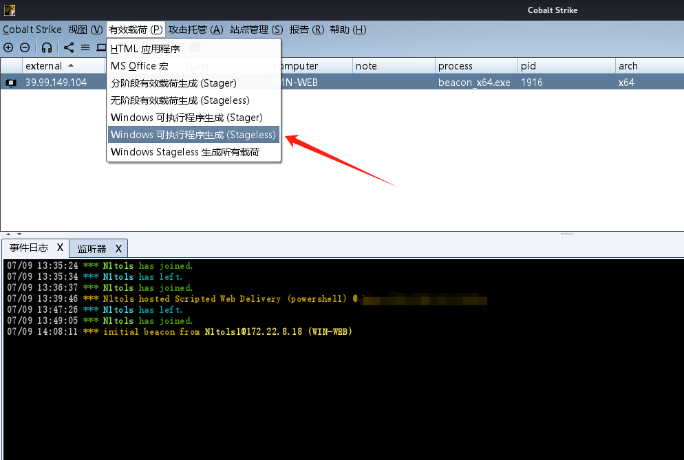 生成一个木马,我这里因为上面设置的用户已经是管理员用户了,所以我直接用我的N1tols用户上线