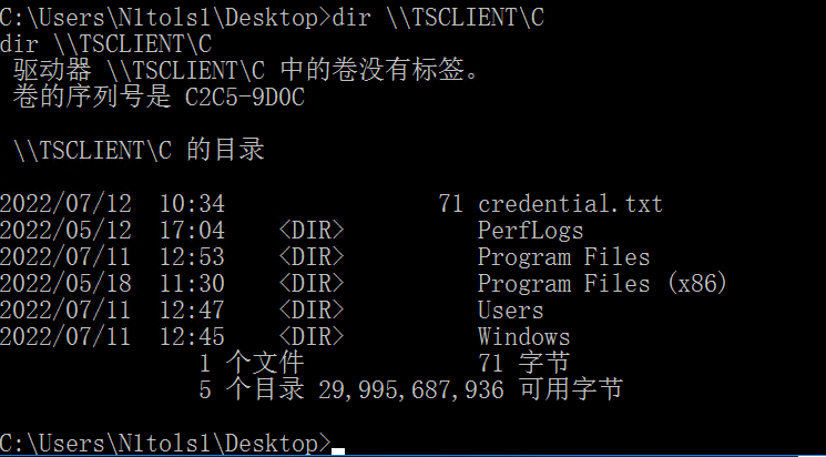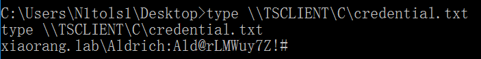 C:\Users\N1tols1\Desktop>type \\TSCLIENT\C\credential.txt