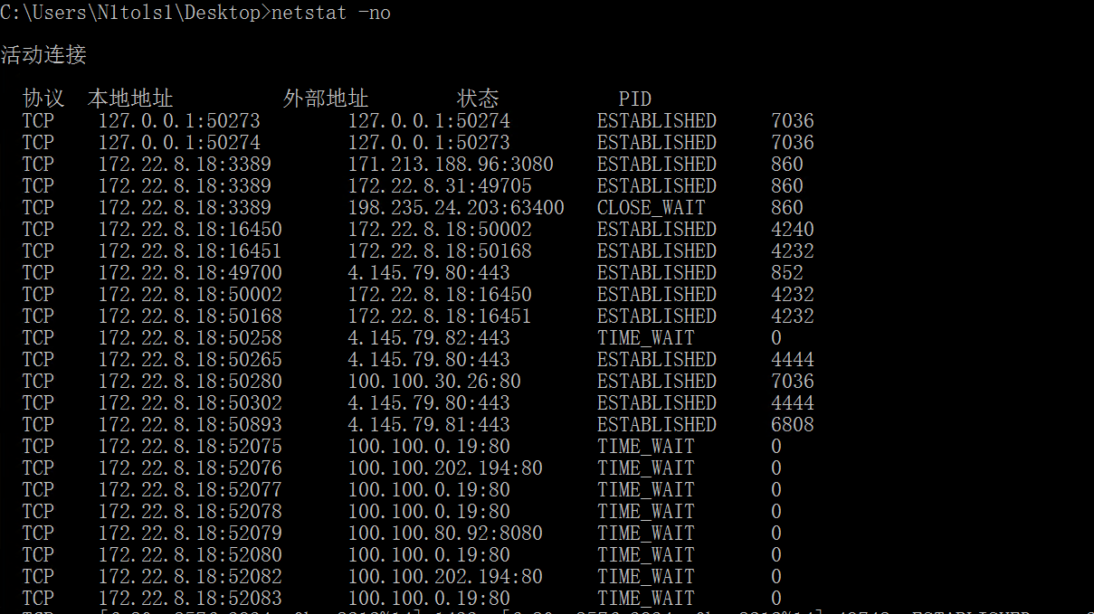 注意:查看网络连接的原因是我们在这台机器也就是web1上没有找到我们想要的文件,这个时候我们成功伪造了jhon用户的令牌是否可以尝试获取jhon用户的网络连接,从而获取到jhon用户网络连接信息里面的内容呢?