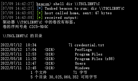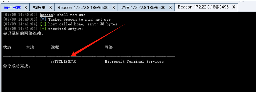 可以看到远程连接了的网络文件夹是\\TSCLIENT\C