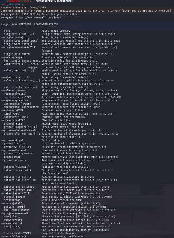sudo apt install john安装好后使用john --help 查看用法