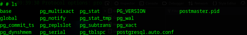 postgres@vaccine:/var/lib/postgresql$ ls