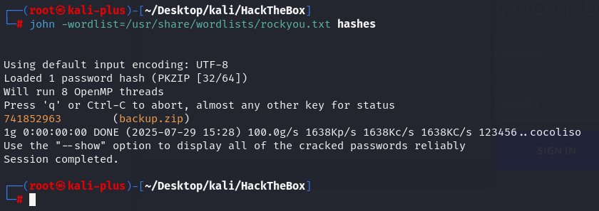 为了成功破解密码,我们必须使用 John the Ripper 自带的 zip2john 模块将 ZIP 文件转换为哈希: