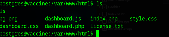 postgres@vaccine:/var/lib/postgresql/11/main$ cd /var/lib/postgresql/