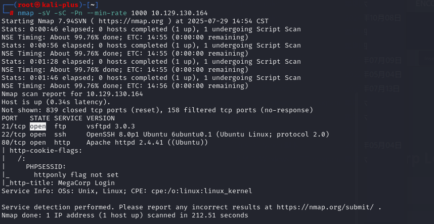 └─# nmap -sV -sC -Pn --min-rate 1000 10.129.130.164