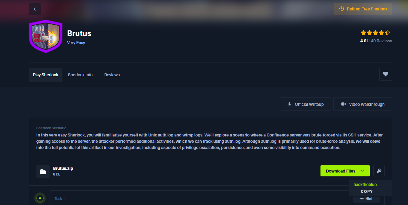 这次做一个应急响应Brutus,是来自HTB的Brutus靶场,应该是能够很好的帮助我们理解auth.log和wtmp两个日志